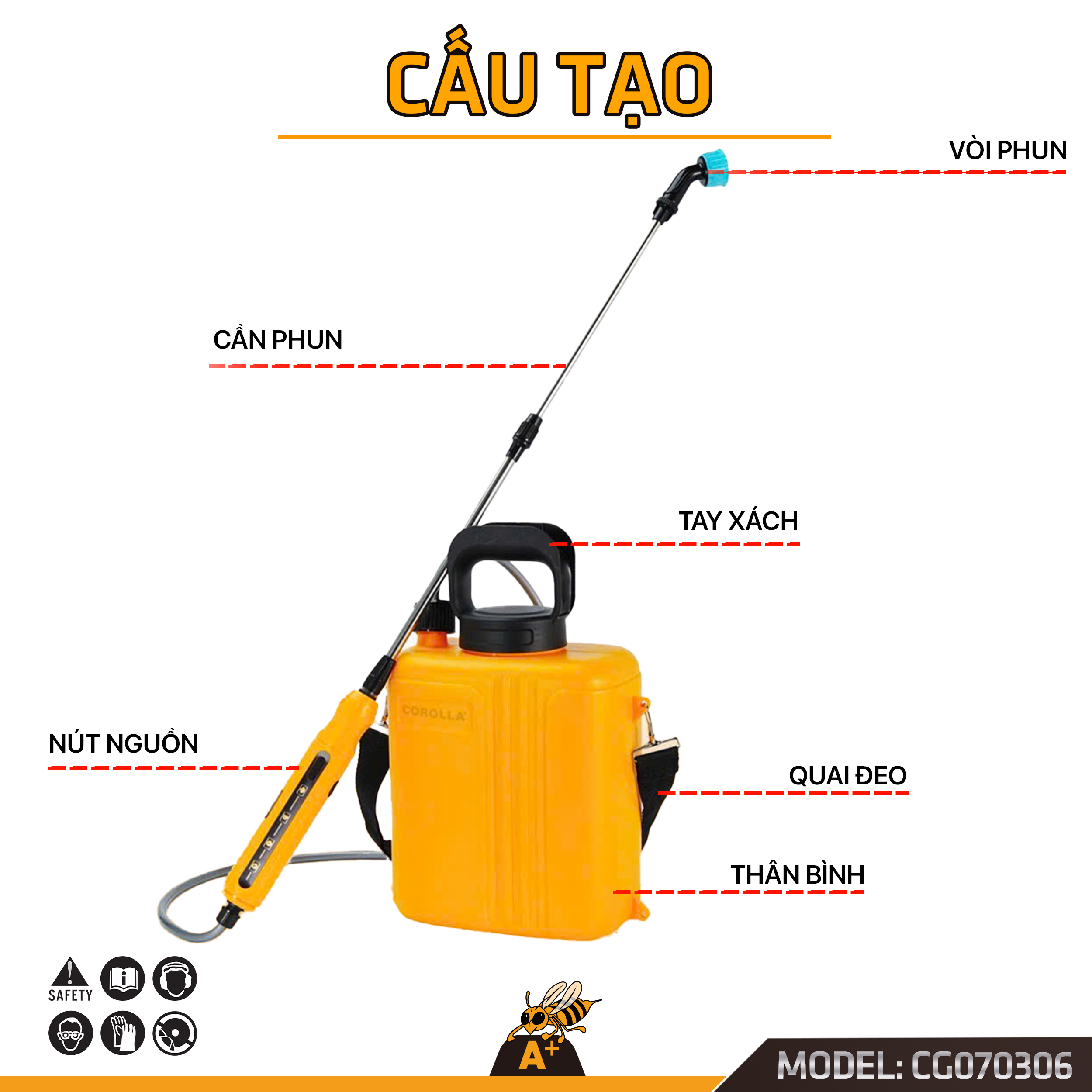 • Chất liệu bền bỉ: Thân bình làm từ nhựa cao cấp, chịu được va đập và sự ăn mòn của hóa chất nông nghiệp cơ bản.