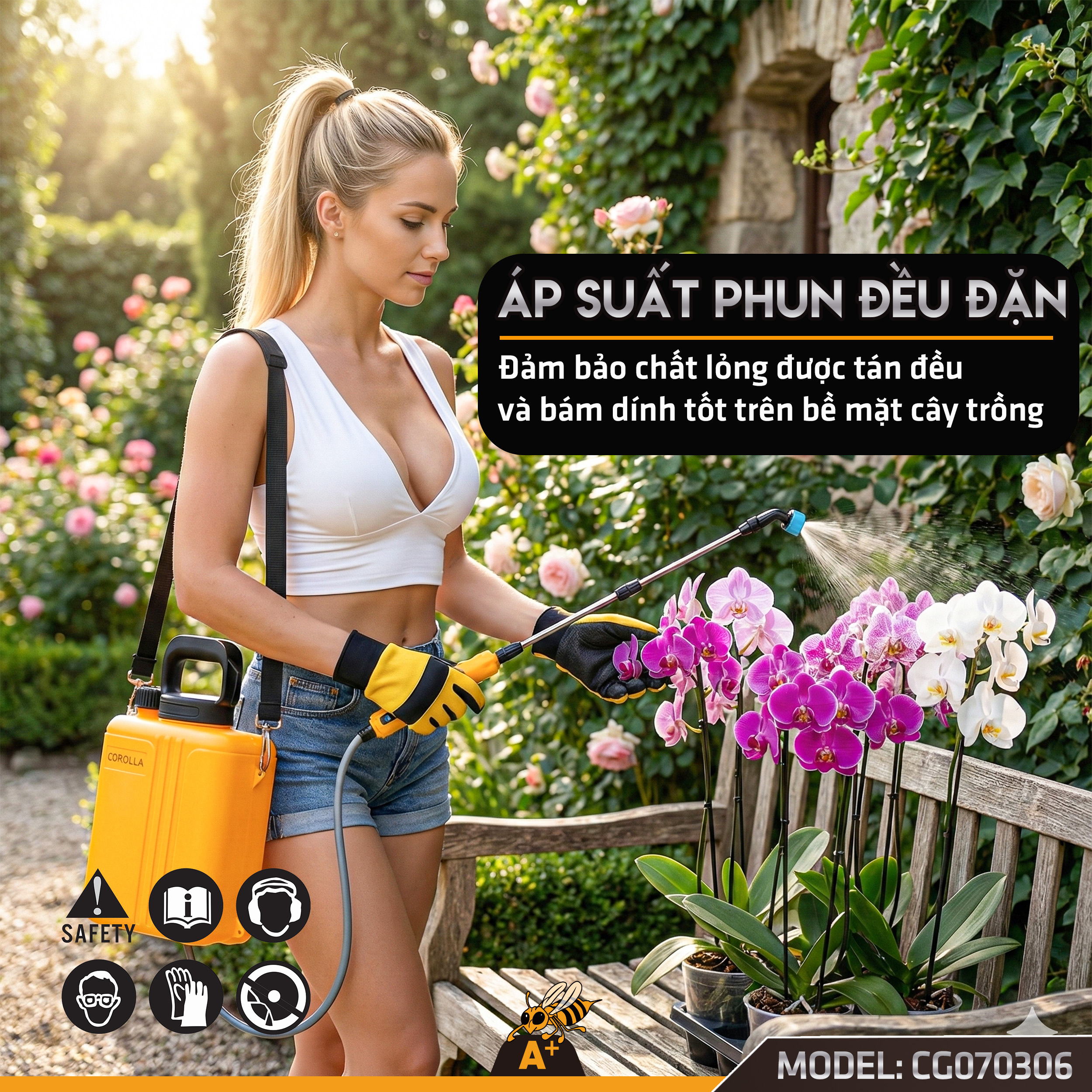 Bình phun tưới cây dùng pin COROLLA 6L là giải pháp nhỏ gọn, hiện đại cho việc chăm sóc cây cảnh, vườn hoa gia đình . Với công nghệ bơm điện tự động, sản phẩm loại bỏ hoàn toàn việc phải cần tay thủ công, giúp phun tưới đều, nhẹ nhàng và hiệu quả.