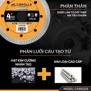Lưỡi cắt gạch đa năng cao cấp COROLLA chuyên cắt gạch đá, bên tông, Brick, concrete, Granite và Marble. Lưỡi cắt kim cương đa năng được sản xuất trên dây chuyền tiên tiến hiện đại.