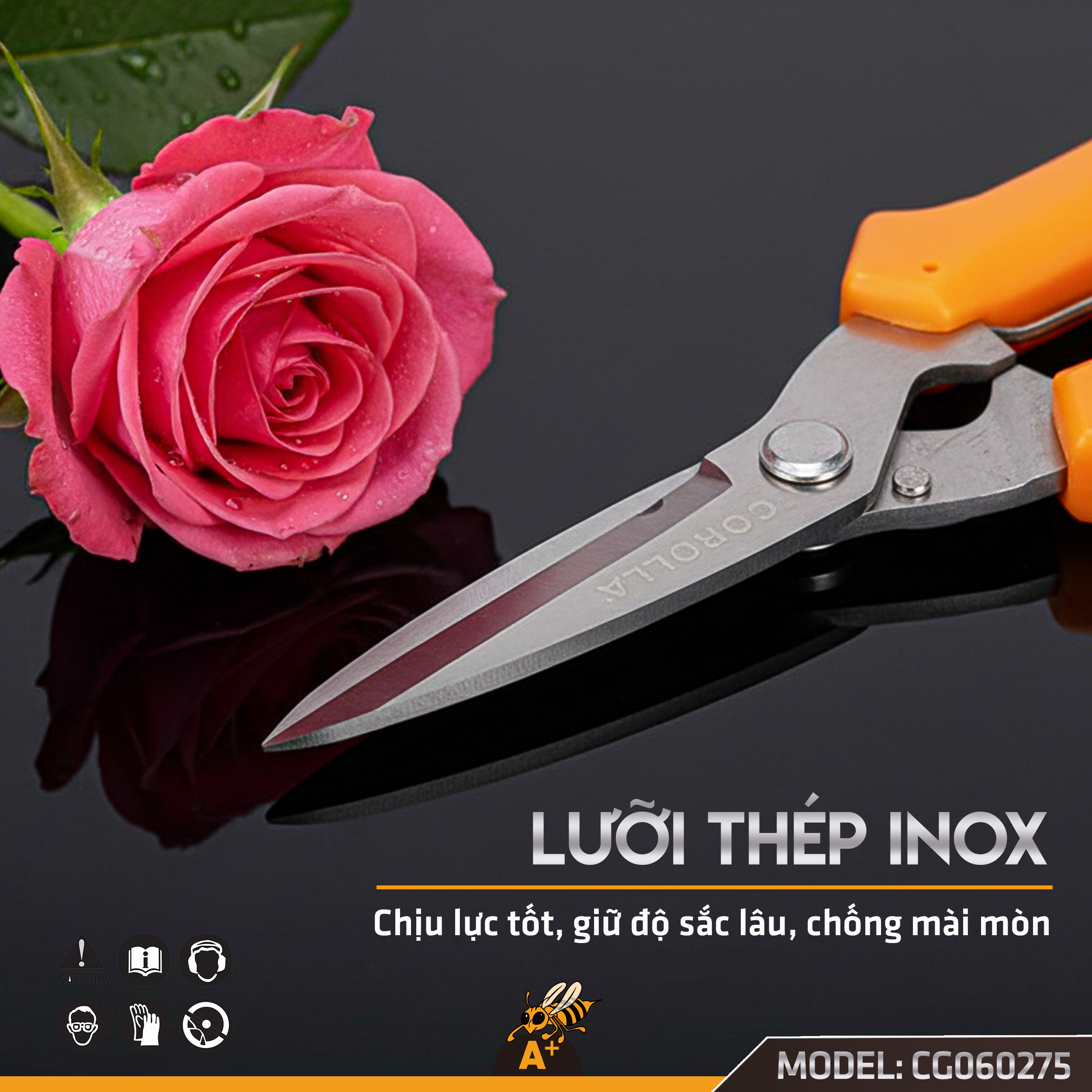 Vật liệu INOX siêu bền: Lưỡi kéo được làm hoàn toàn từ Inox, mang lại khả năng chống gỉ sét tuyệt đối, thích hợp làm việc trong điều kiện sương muối, nhựa cây hoặc độ ẩm cao mà vẫn giữ được độ bóng và sắc bén.