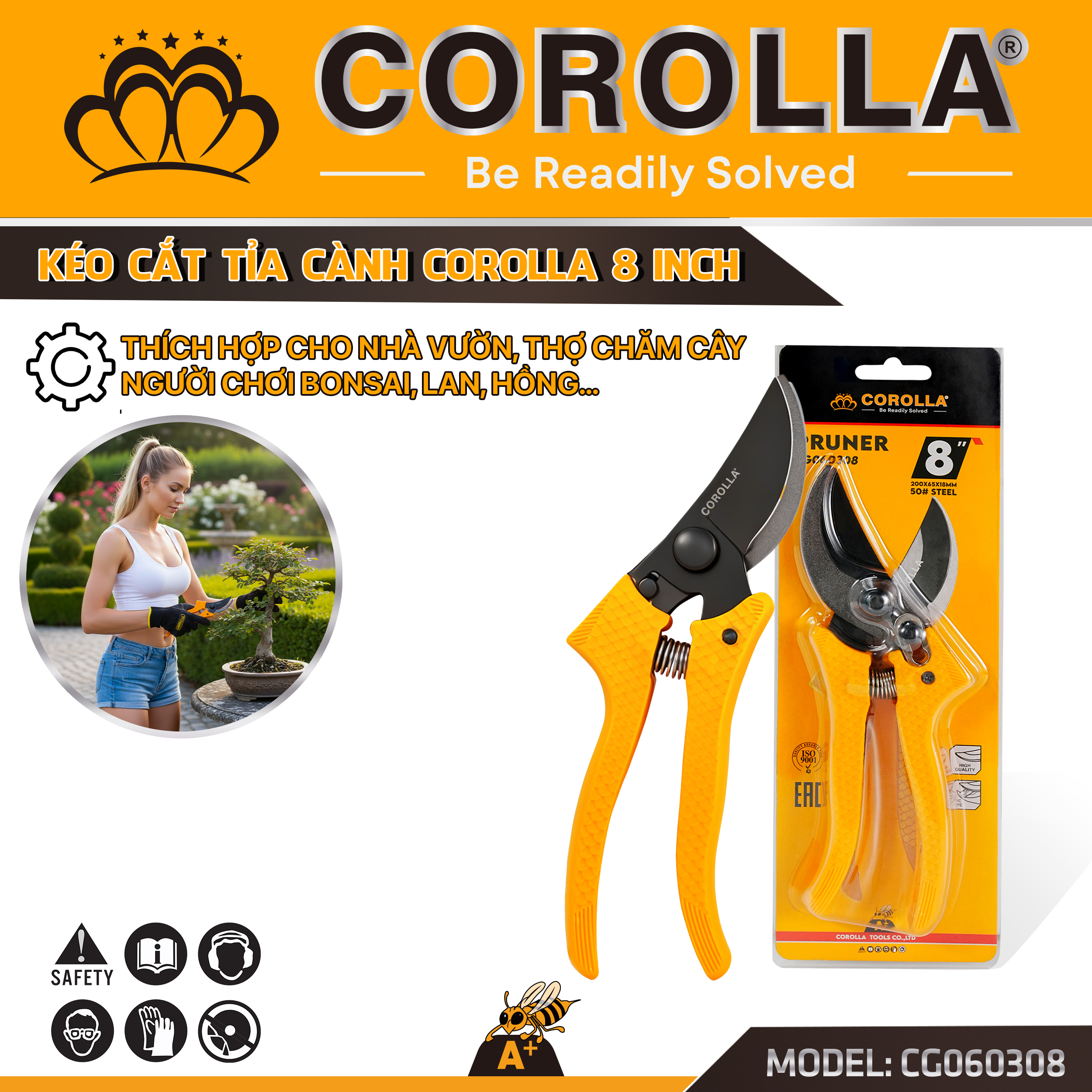 KÉO CẮT TỈA CÀNH COROLLA 8 INCH là một trong những sản phẩm được nhập khẩu từ nhà máy uy tín hàng đầu tại Trung Quốc. Nếu quý khách hàng có nhu cầu sử dụng hãy liên hệ ngay với các nhà phân phối và đại lý COROLLA của chúng tôi.