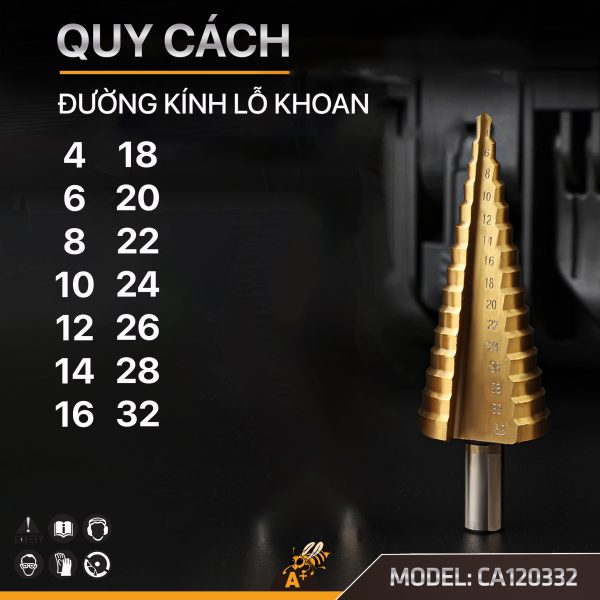 Đường kính khoan: 4, 6, 8, 10, 12, 14, 16, 18, 20, 22, 24, 26, 28, 30, 32mm