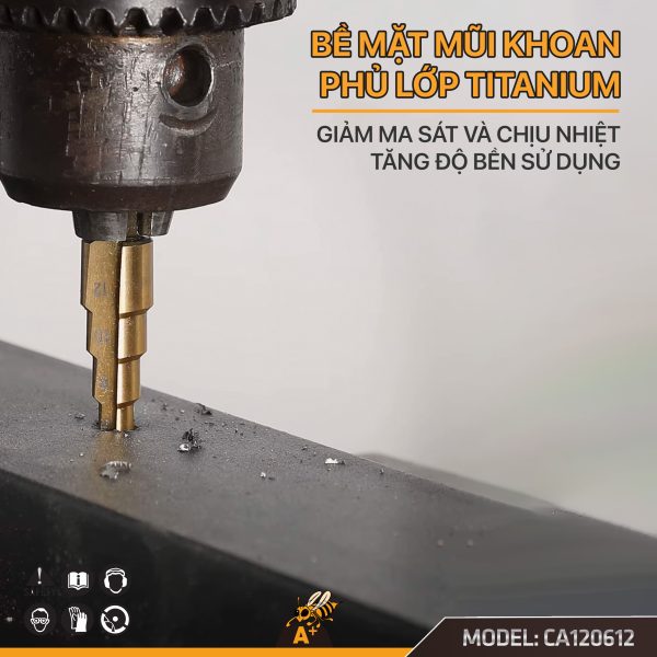 Với nhiều cấp đường kính khác nhau trên một mũi khoan, bạn có thể khoan từ 4mm đến 12mm mà không cần thay mũi như khoan thường.